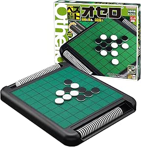 ちょうどいいサイズの、ベーシックな盤タイプのオセロです。 石の収納ケースは盤と一体型になっていて、使いやすさと片付けのしやすさを両立。セットには、盤本体1個、オセロ石64個に加えて予備の石も付いています。