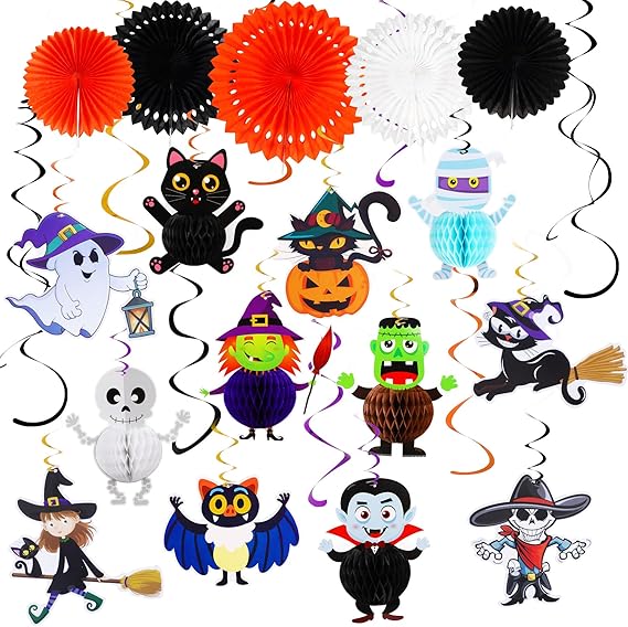 「HAPPY HALLOWEEN」のフラッグバナー、かぼちゃや魔女たちのハロウィンガーランド、ペーパーファンにハニカムボールといった豪華30点セット。「どれにしようか迷っちゃう」「部屋ごとに違う雰囲気にしたい」という方におすすめです。