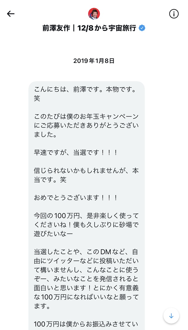 当選時、実際に送られてきたDM