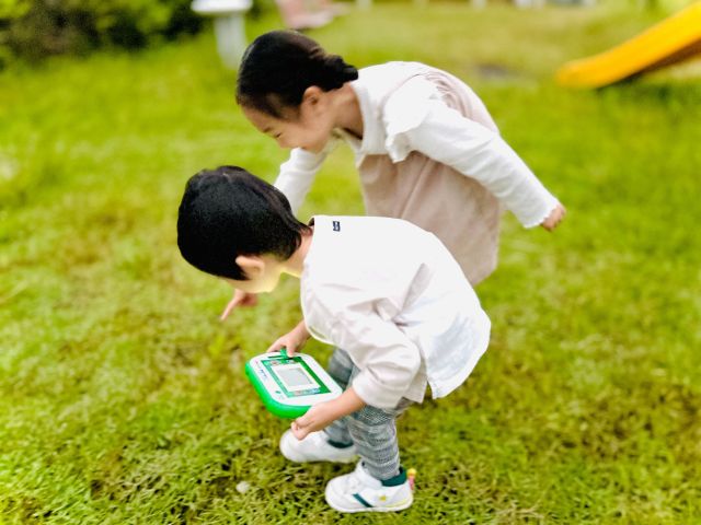 稲葉さん:甥っ子(3歳)と公園に行くときに持って出かけました。公園で見つけた昆虫を図鑑で調べながら、2人とも夢中に。小学1年生の娘は操作にもすぐに慣れて使いこなし、甥っ子も写真を撮ったりしながら、一緒に楽しんでいました。『小学館の図鑑NEOPad』を持って出かけるだけで、いつもの公園がまったく違う景色に変わります。季節ごとに出会える虫や植物を調べながら、「この虫はどこに住んでるの?」「次は違う虫を見つけたい!」と、子どもの興味や好奇心がどんどん広がっていくのを感じました。
