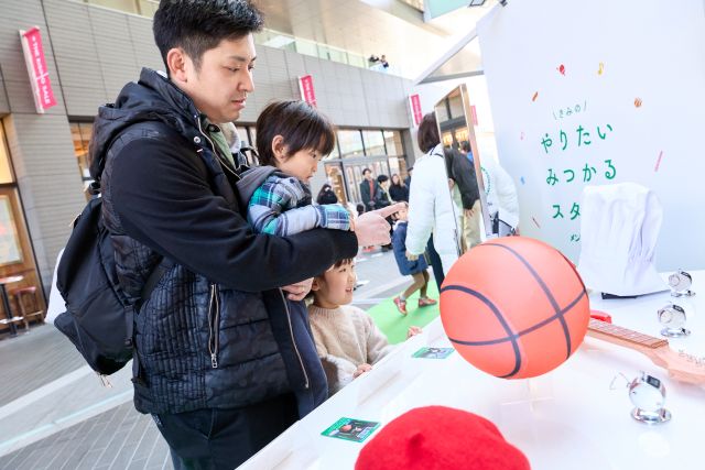 会場には、スポーツや音楽、表現、ものづくりなど、20種類の“やってみたい!”が描かれたカードも展示・配付。「これも楽しそう」「これはなに?」カードを見比べながら、親子で自然と会話が生まれます。気に入ったカードは持ち帰ることができるため、家に帰ってからも体験を振り返るきっかけに。