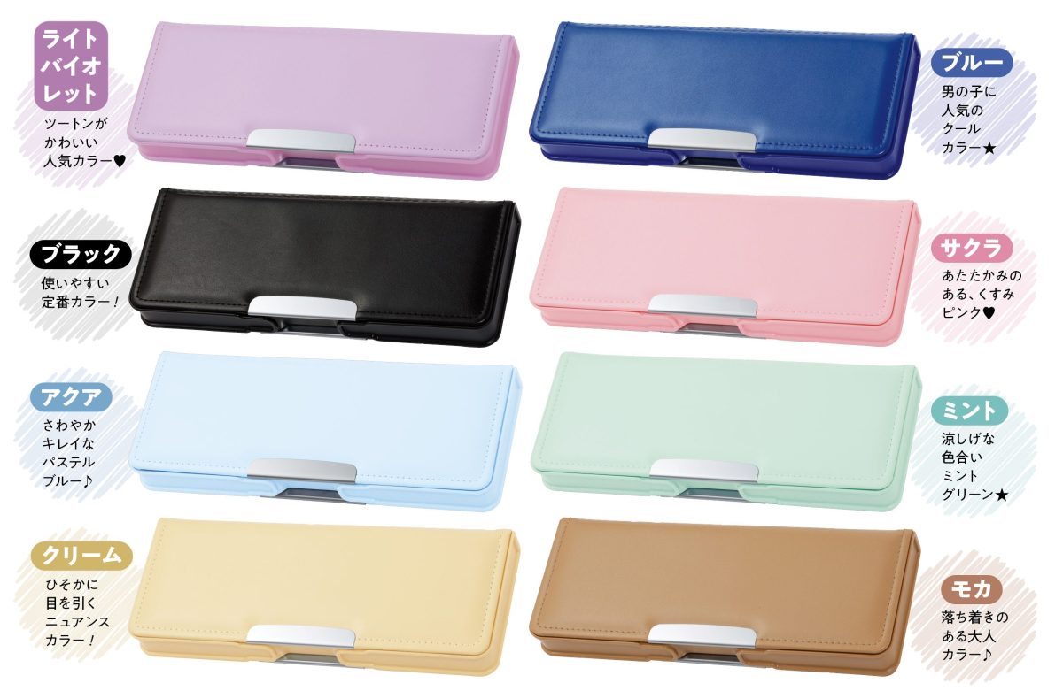 人気の両面開きタイプ。物をしまう場所が決まっているので、何がどこにあるかひと目でわかります。ペンホルダーは鉛筆の先が見えるので、削り忘れもありません。
