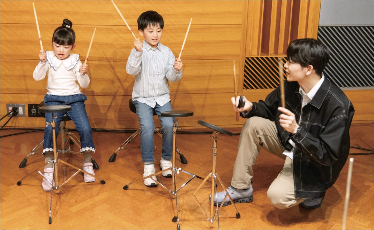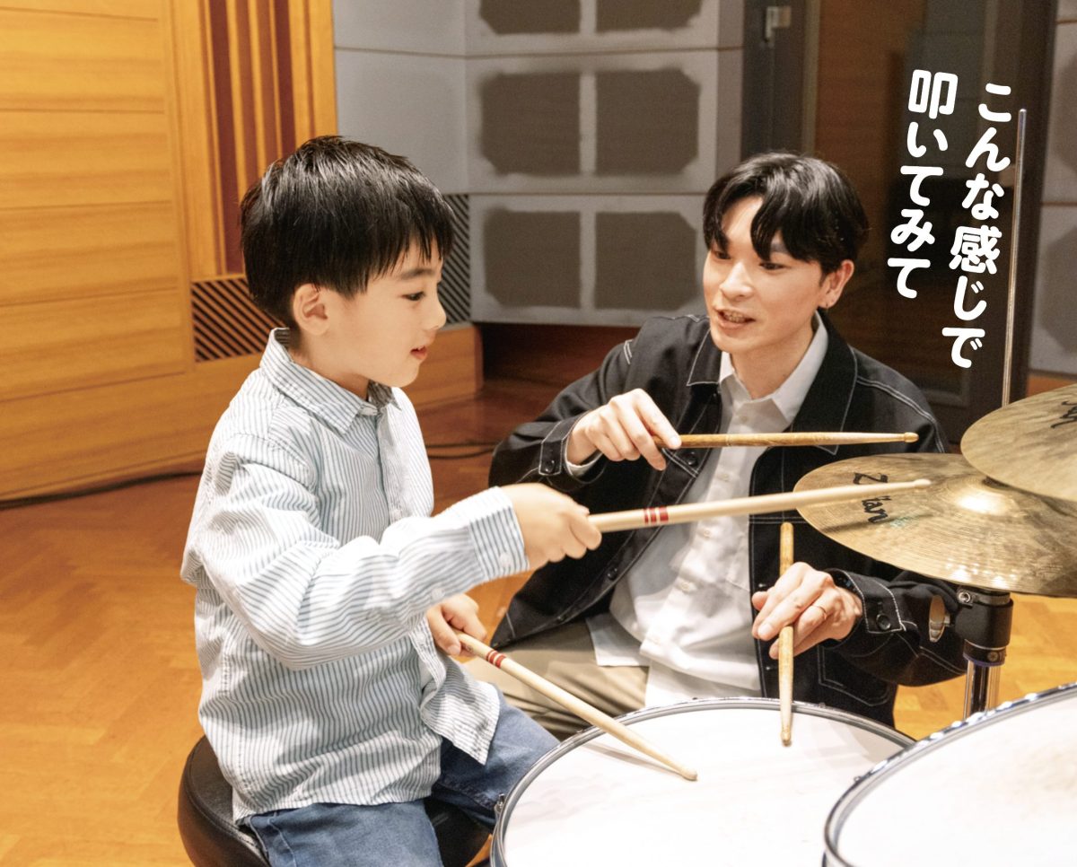 ドラムは基本的にソロでは完結しない楽器なので、バンドを組んだり誰かと一緒に音を出して楽しめるところも魅力です。ボーカルの声や他の楽器の音を聴きながら演奏することで、耳や協調性が育ちますし、対応力や考える力もつきます。お父さんと一緒にスタジオを借りてセッションを楽しんでいる生徒さんもいますよ。
