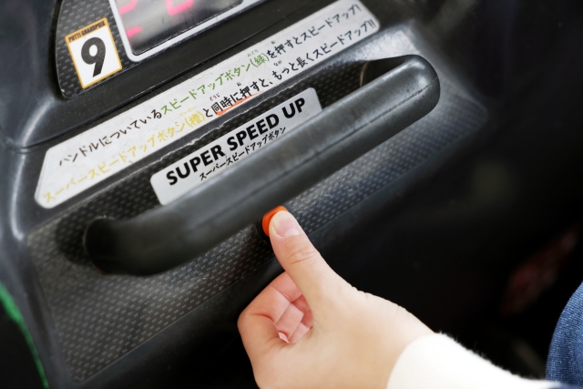 さらに、2人で挑戦するとスピードアップボタンを同時に押して加速する“スーパースピードアップ”にもチャレンジできます。今回編集長とセイくんが乗った車でチャレンジしましたが、タイミングを合わせて成功するとスピードアップを維持したまま走らせることができ、思わず熱中してしまいました。