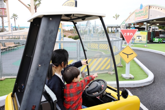 「コチラドライビングスクール」は、親が隣に座りながら、子どもと一緒に交通ルールやマナーを学べるアトラクションです。信号や標識を確認しながら運転する体験を通して、遊びの中で“ルールを守る”感覚が自然と身についていきます。
