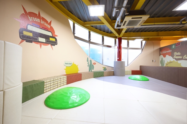 「ぶんぶんばちひろば」は、0歳から3歳までの子どもが安心して過ごせる専用のプレイスペース。体の大きさや年齢に合わせて、無理なく遊べる環境が整っているのも魅力です。カラフルな遊具や迷路のようなしかけがあり、遊びながら好奇心や想像力も刺激されそう。