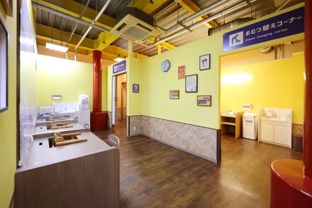 ベビーセンターには授乳室やおむつ交換台のほか、調乳用のお湯が使える設備や離乳食スペース、ハイハイできるクッションスペースなども用意されているので、小さな赤ちゃん連れでもゆったり過ごせる環境が整っています。