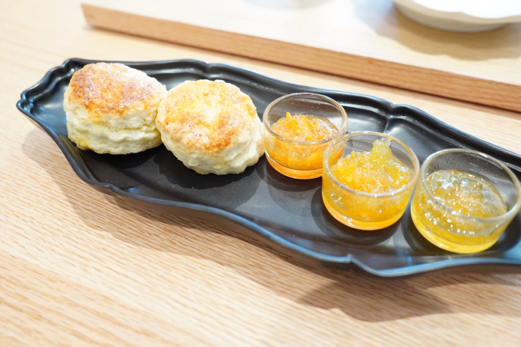“春かんきつのプレミアムパフェ”は、ジューシーな果実が下の方までたっぷり! “スコーン~選べる3種のマーマレード”はジャムを3種類選べたので「きよみ」「さんぽうかん」「じゃばら」を注文。それぞれ異なる風味と甘みでした。