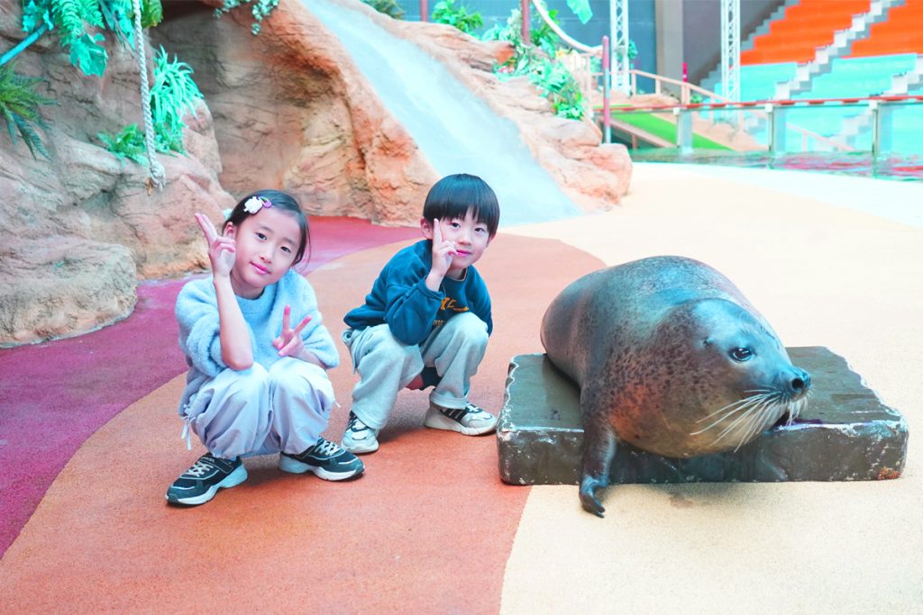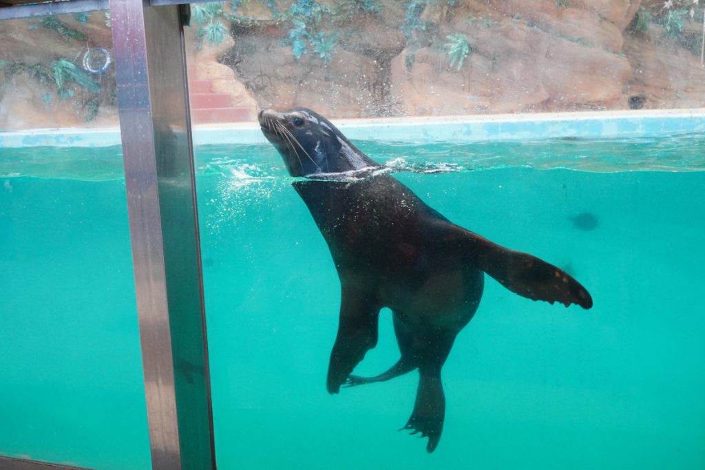 軽食コーナーでおやつを食べたら、最後は「アニマルアクションフレンズ」へ。これはアシカの観察や、アザラシと記念撮影ができる体験アトラクション。かわいらしさを堪能するだけではなく、生態の特徴を観察し、学ぶことができる貴重な機会です。