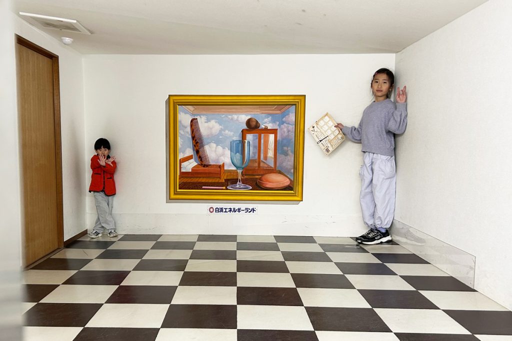 まずは、空港から車で約7分の「白浜エネルギーランド」へ。「人と自然のエネルギー」をテーマにした体験型テーマパークです。といっても堅苦しいものではなく、VRを使った映像アトラクションや、トリックアートや迷路などの体験アトラクションなど、子どもがワクワクする要素が満載!