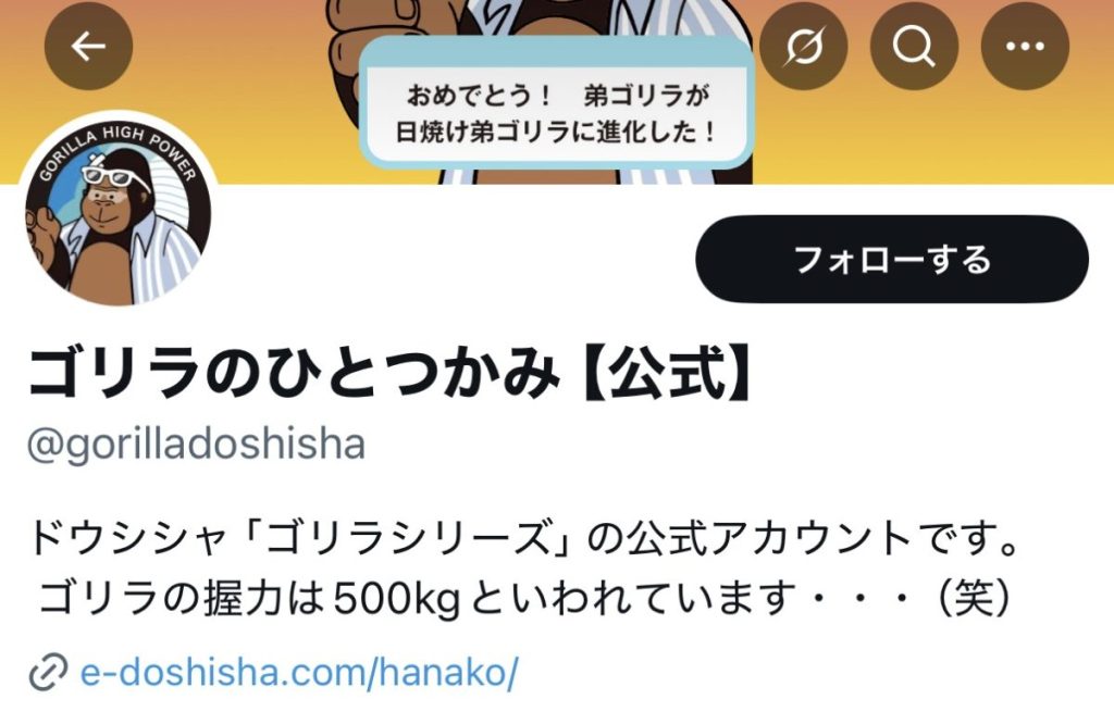 そんな「ゴリラシリーズ」の公式Xアカウント(@gorilladoshisha)のアイコンが、弟ゴリラから“日焼け弟ゴリラ”に進化!