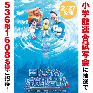 おでかけ 2025.11.20 【全5会場で開催】『映画ドラえもん 新・のび太の海底鬼岩城』試写会に1608名様をご招待!応募締切は2026年1月16日まで 2026年2月27日(金)に公開される『映画ドラえもん 新・のび太の海底鬼岩城』の連合試写会が全国5会場で開催決定!今…
